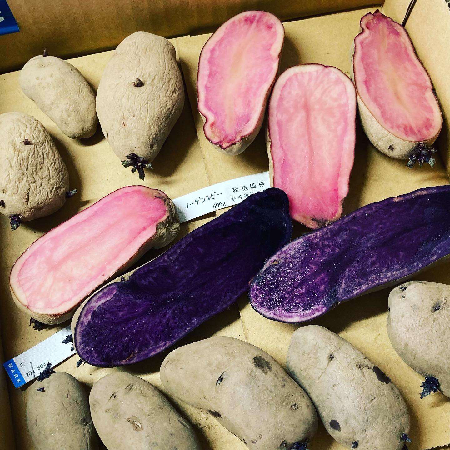 購入した種芋を切ったら中々の色合いでびっくりです。